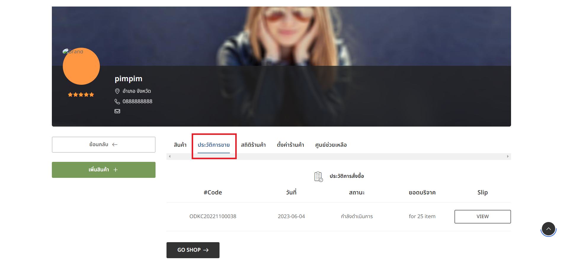 สามารถตรวจสอบคำสั่งซื้อได้ที่ "ประวัติการขาย"